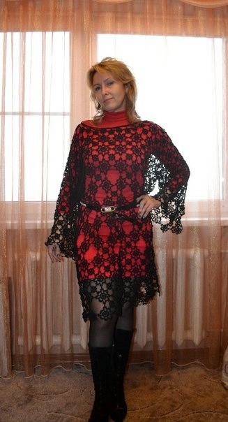 Для сестрички платье-туника из мотивов,пряжа-хлопок
