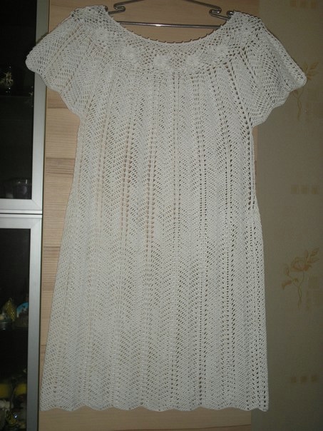 Связалось такое платье, размер 44-46, нитки Анна 14, расход 350 гр, крючок 2.