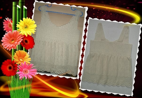 Ажурная блуза.Мотивы из сосо, основной цвет-нитки Анна 14, крючок 2.