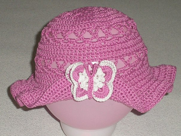 Детская панама с съемными цветком и бабочкой)Нитки rose в 2 сложения, крючок 3(узор позволяет продувать ветерку, защищать от солнышка, да и в Питере лето всегда не такое уж и жаркое)...