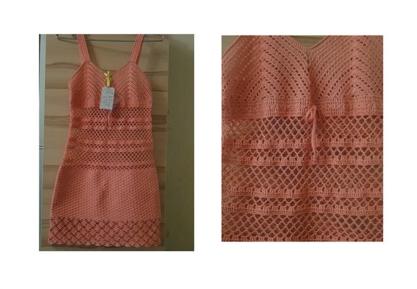 Связался вот такой сарафан. Нитки бегония, цвет лосось, крючок 2,5, размер 40-42.