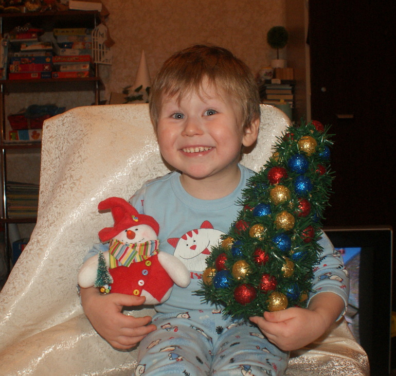 Иринка, с Новым годом и Рождеством!!!Замечательные елочки и овечка, снеговик просто чудесен!!! А Арсений лучше всех, улыбайка)))))
