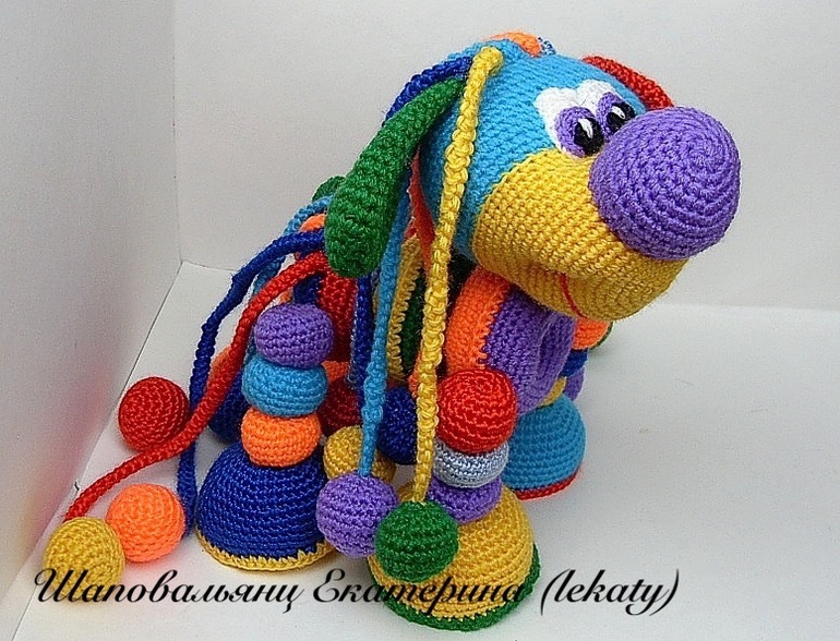 Игрушечный мир - животныеСвязался на заказ для девочки-подростка такой вот яркий и веселый пёсик. На этот раз - это не развивающая, а просто мягкая игрушка, без всяких там погремушек, пищалок, шуршалок и подобного.