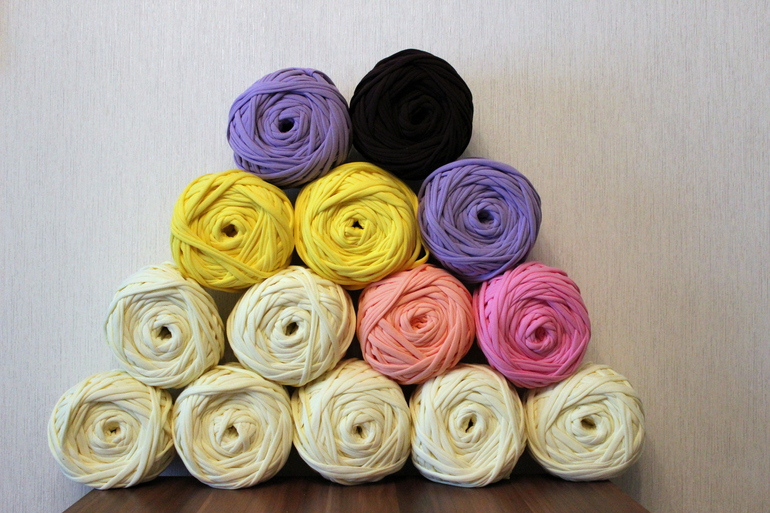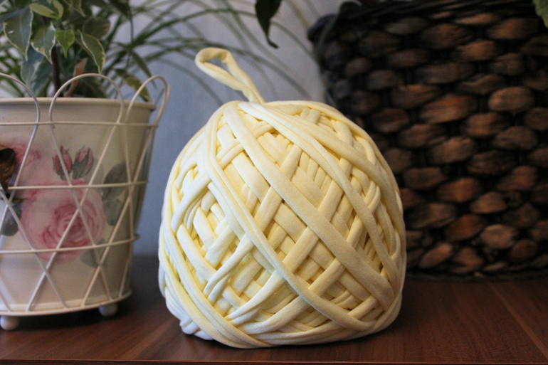 Пряжа Турецкой фирмы YarnArt нашла совершенно случайно в ближайшем рукодельном магазине. Нитка чем то напоминает обычный маечный трикотаж... что мне не понравилось, так это то что сама нитка не равномерная, есть места где она тонюсенькая как обычная ниточка, а есть где ширина почти 2 см!!! Но все равно корзинки получилась отличными!!!