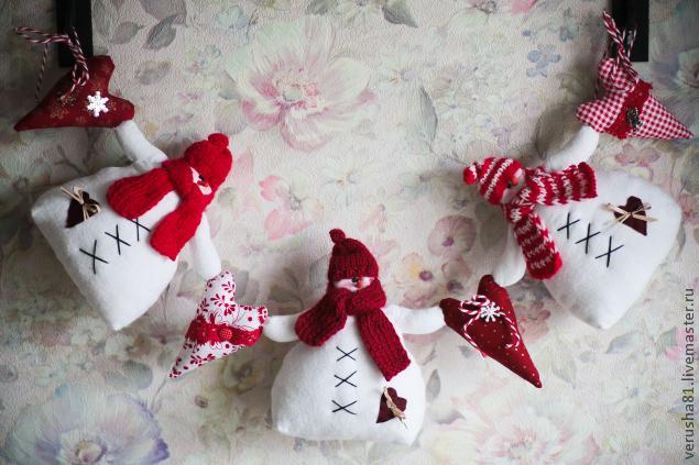 Декор, витражи.Эту гирлянду я пощила за один вечер, точнее ночь))) потому что днем шила, потом пекла печенье и ночью дошивала))) Очень легкая и веселая. Идею позаимствовала в инэте + добавила свои изюминки в виде елочек.