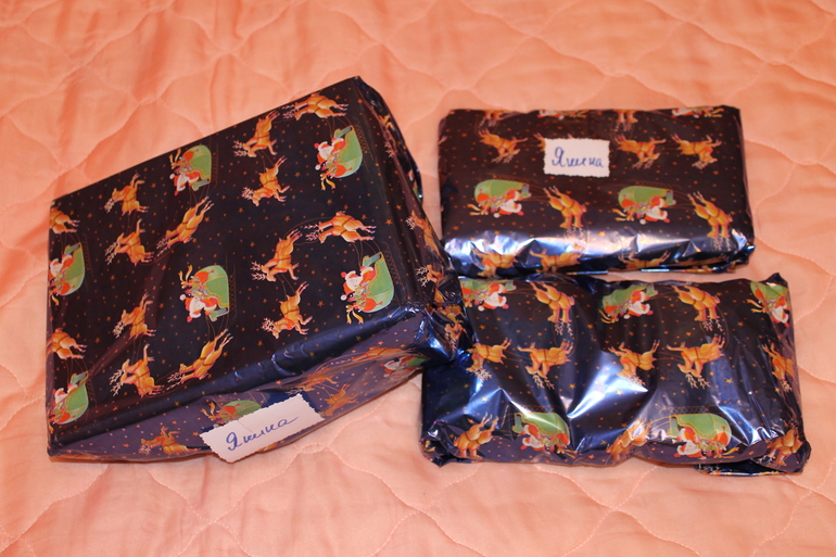 Подарочки все были тщательно упакованы!!! Немалое удовольствие нам доставил сам процесс открывания подарочков!!! И вот, что там было!!!