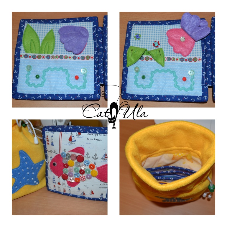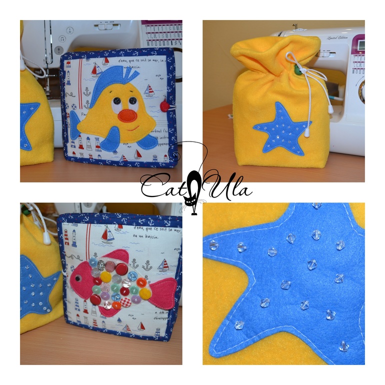 Попробовала сшить еще одну мини-книжку, на этот раз на морскую тему, и на этот раз странички из хлопка. Получились не такие уютные, как флисовые, но зато ярче.