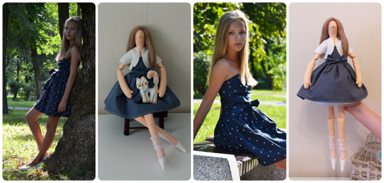 И в завершении выкладываю ( с разрешения заказчицы) фотоколлаж с фото новой хозяйки куколки.