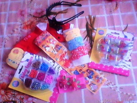 множество заколочек, ободочек, носочки, наклейки, наборы бусинок для рукоделия - для старшей дочки))))