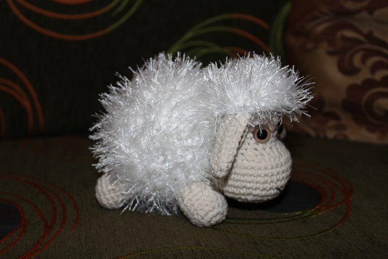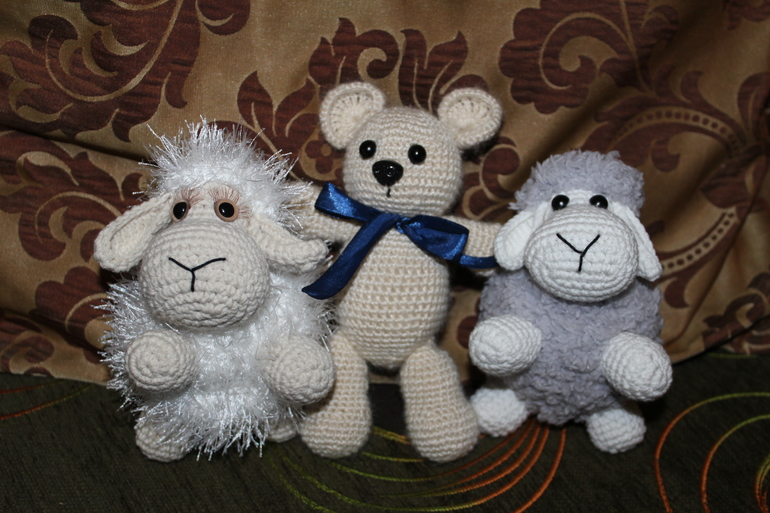 Класс! Наконец-то выложила. Мишка супер, а ресницы у бежевой овечки вообще отпад, моего мелкого напоминают. Все родственники разглядывали твою овечку и спрашивали "из чего сшили?", никто не верил, что это связано. Пять баллов!!!