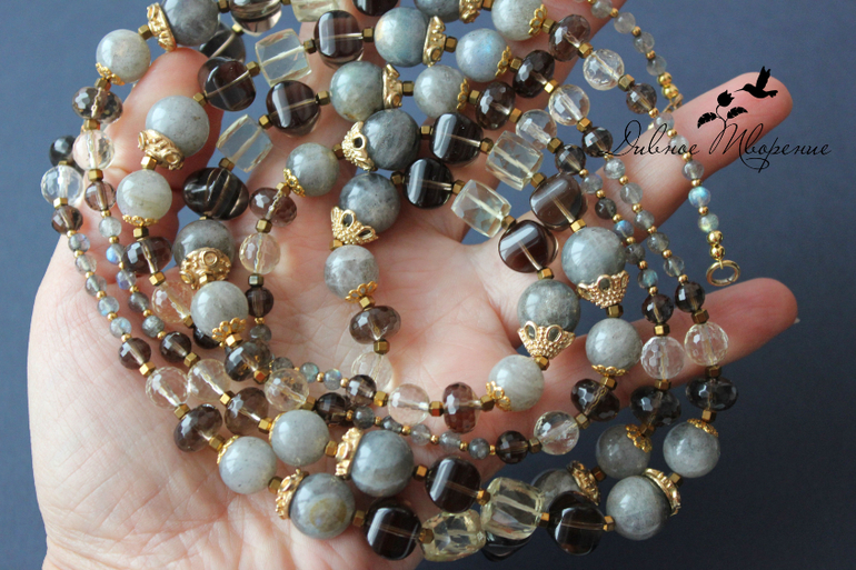 Длинные бусы (сотуар) из лабрадорита,раухтопаза и цитрина.