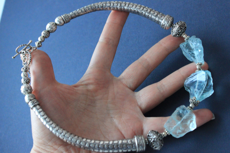 И два колье-чокера с голубыми и синими кварцами