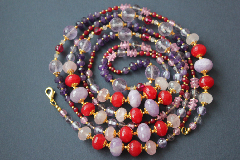 Еще один сотуар делала под заказ,с малиновой шпинелью,рубинами,аметистами и цирконами.