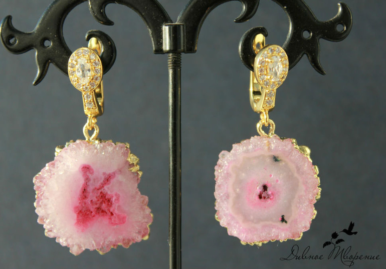 И позолоченные серьги с друзами кварца.