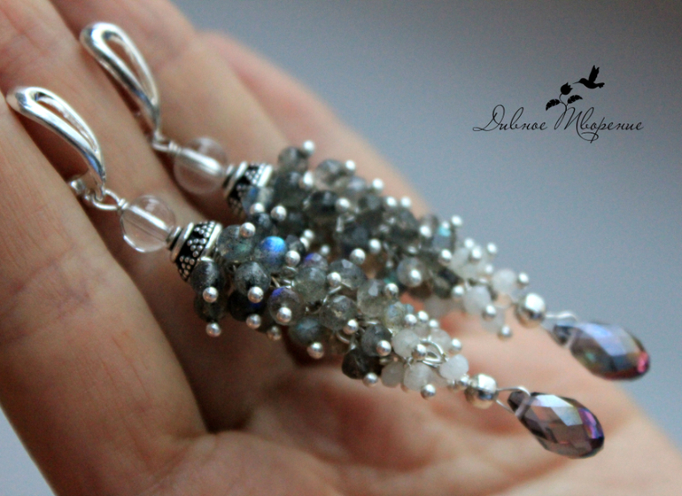 Для начала покажу серьги-грозди из лабрадорита и лунного камня.