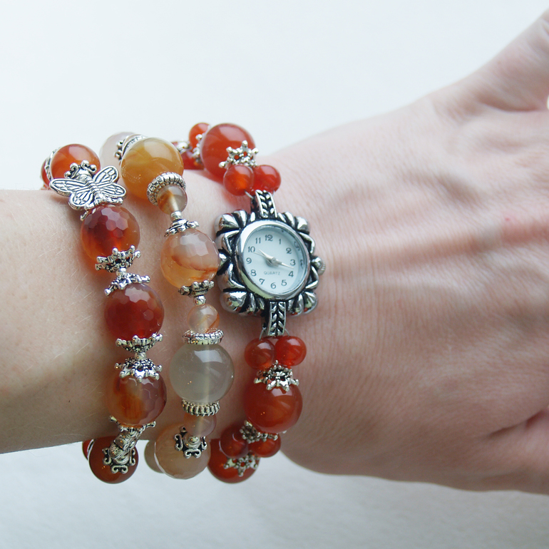 Бижутерия для слингомам. Слингобусы. Грызунки.Яркий и солнечный комплект, состоящий из часов и двух браслетов!