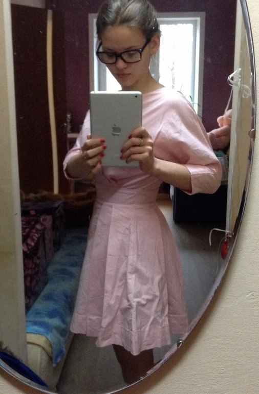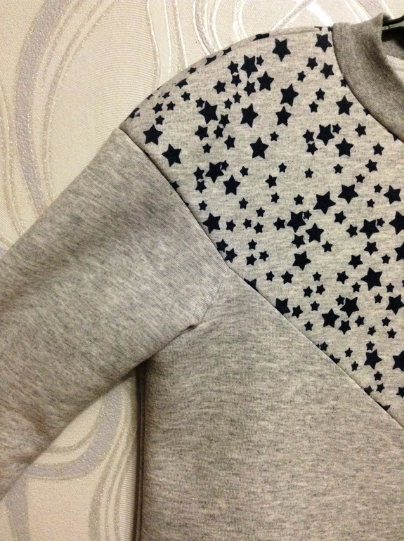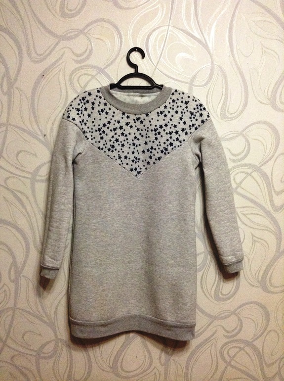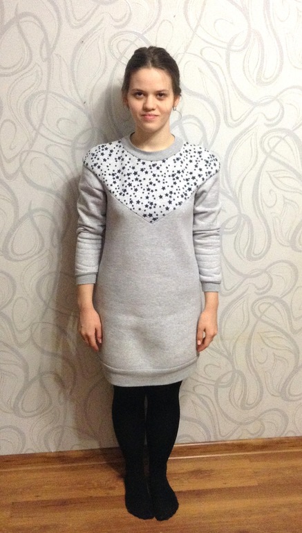 1. Платье из теплого футера (с начесом снизу) с необычным фасоном рукава.
