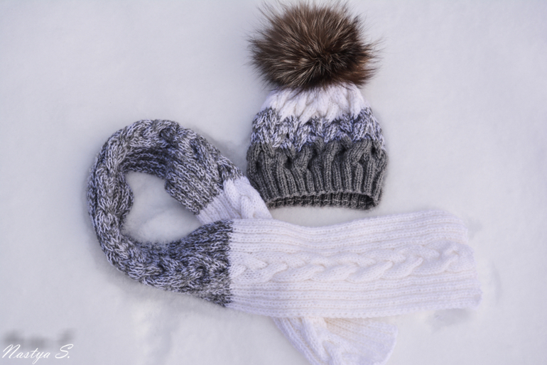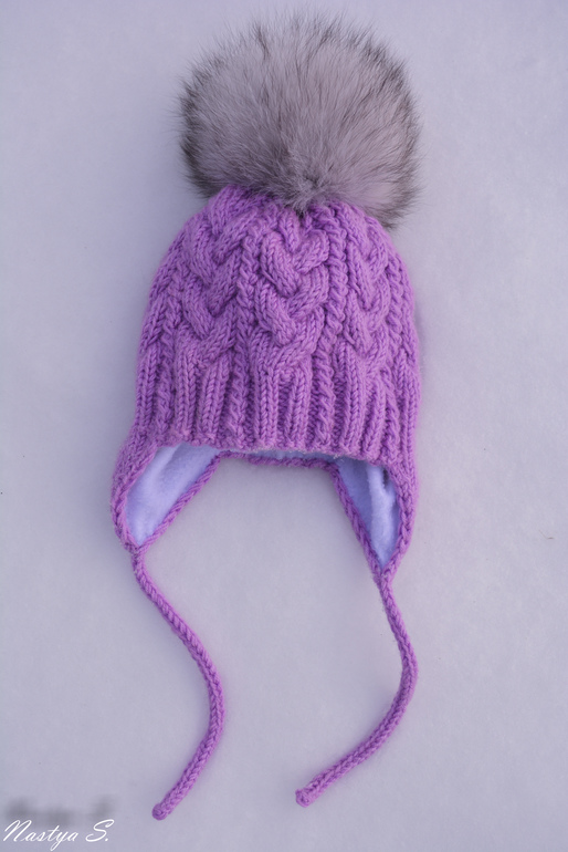 И еще обновка для Леры, пришлось срочно вязать т.к. первая сильно слиняла при стирке и стала неприяглядного вида. Там была белая резинка и фиолетовым вся шапка, после стирки белая резинка стала-розовая ((( перестирывала дважды, пока мокрая не видно ничего, как высыхает - линяет. Помпон перекочевал на новую шапку