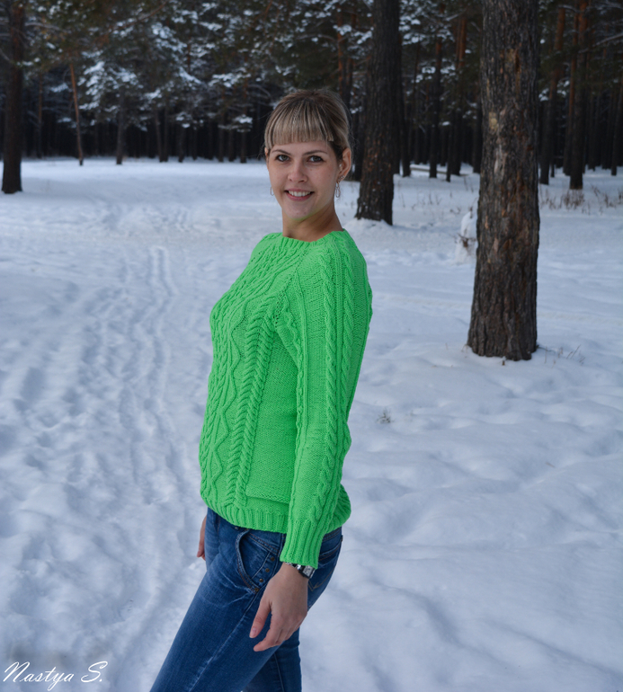 По большому счету все отдельно взятые косы давно придуманы кем-то, я лишь выбрала от себя количество петель косы и высоту перехлеста, ну и расположение этих самых кос придумано мною. Реглан не сложно. Для меня самое сложное в этом свитере были рукава, это просто мучение!!! Тушку я связала быстрее, чем потом рукава, особенно второй. Свитер у меня с одним рукавом лежал месяца 2 точно, не хотелось браться за него. Рукава на 5 спицах, крутить приходится все изделие целиком.. это потом я приноровилась и то мне девочка подсказала что надо было вязать их на двух и потом сшить, мне кажется так было бы быстрее. И еще я не очень довольна как получилась подмышка, вот смотрю на нее и даже сама не пойму что я сделала не так и как изменить технику, чтобы в будущем не повторить эту ошибку