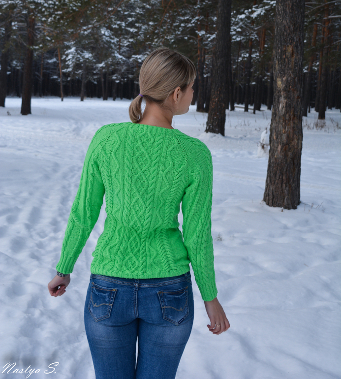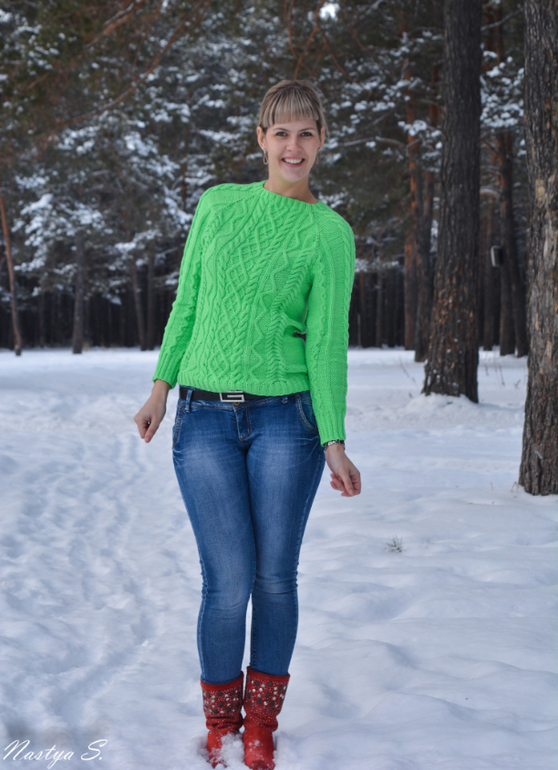 Очень красиво. А зеленый свитер напомнил мне мой в детстве. Мама вязала))