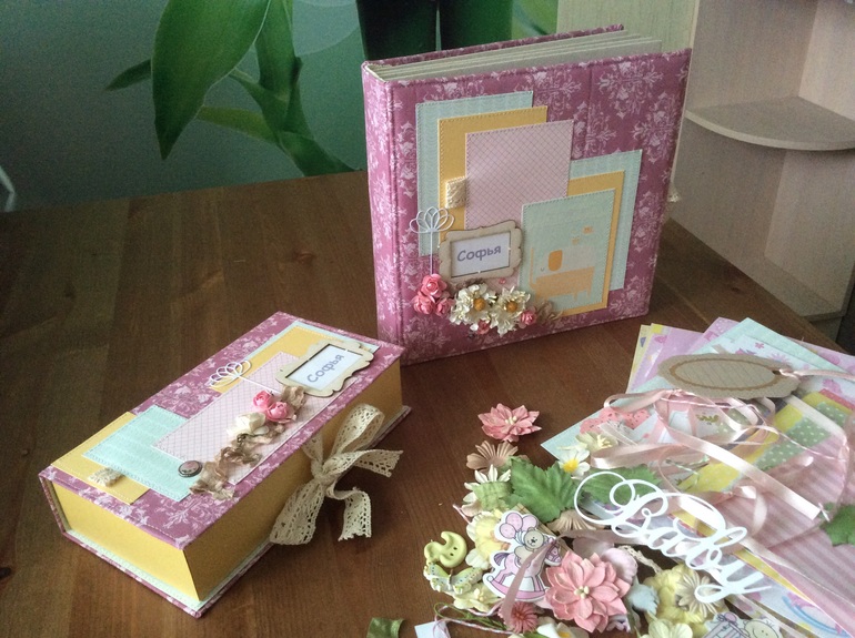СкрапбукингДевочки, здравствуйте!!! Сегодня к вам на минуточку- показать комплект для Софьи. Он состоит из набора для создания Альбома первого годика (обложка готова) и сокровищницы. Хочу показать вам коробочку)))