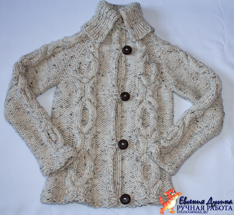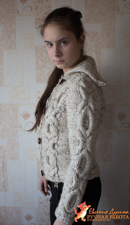 Пожеланием Полины было: "Свяжи мне кофту с косами"). После недолгих переговоров пришли к такому вот результату)