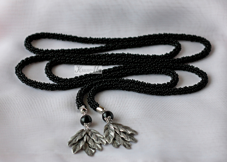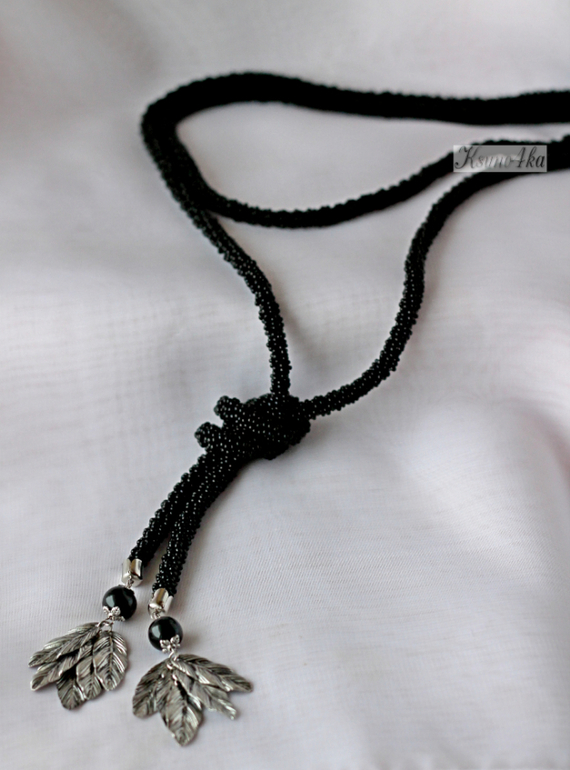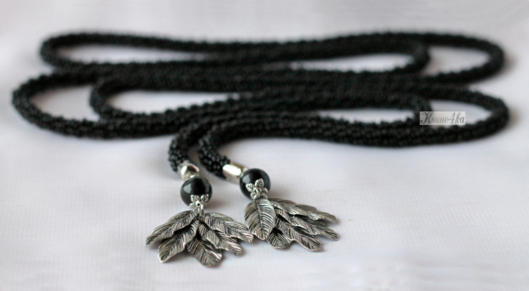 Лариат "Чёрный лебедь" выполнен в технике "турецкий жгут". Простой, лаконичный, но такой загадочный... И у меня почему-то возникла ассоциация с великолепной птицей.
