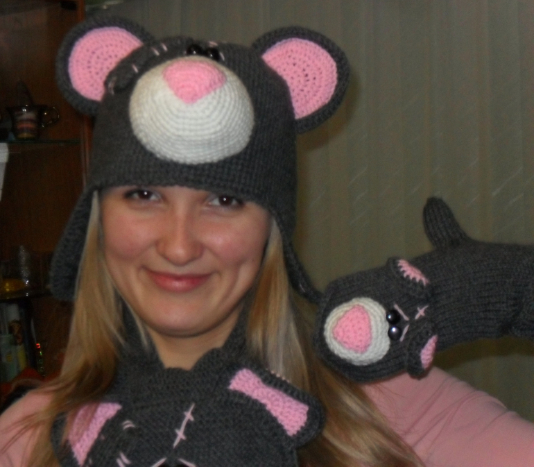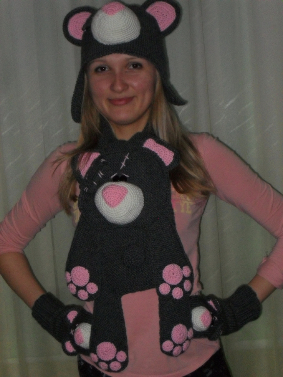 Вот такой повторюшка у меня связался для моей подружке (тут ниточки не много потемнее и бантики не стали делать, а то уж совсем по детским выглядит..), так прикольно смотрится.. теперь Полина им бредит, так что придется еще раз повторить думаю.. Многим полюбился этот комплект.. он и вправду такой миленький и прикольный.. Простите фото не лучшего качества, но то что успелось в впопыхах сфоткать то и показываю..
