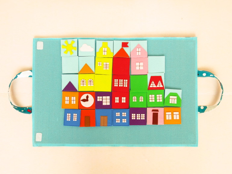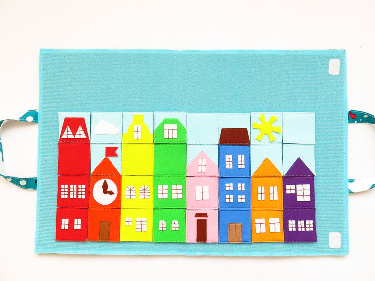 Не знаю откуда Вы эту идею взяли, но у меня лежит книжечка "Самые первые аппликации", купленная специально, чтобы воплотиться в фетре (ааа, когда же детки подрастут и время появится на шитье) с похожей идеей: домик (или это замок?) из отдельных модулей-квадратиков и крыши треугольнички)))))