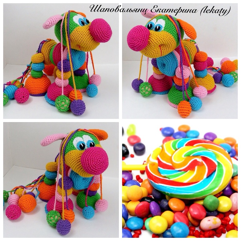 Вот такая карамельно-яркая девочка связалась на заказ и уже уехала домой, так что совсем скоро будет радовать свою маленькую хозяйку шуршащими ушками и ножками, гремящими шариками и тд. Более подробное описание под катом