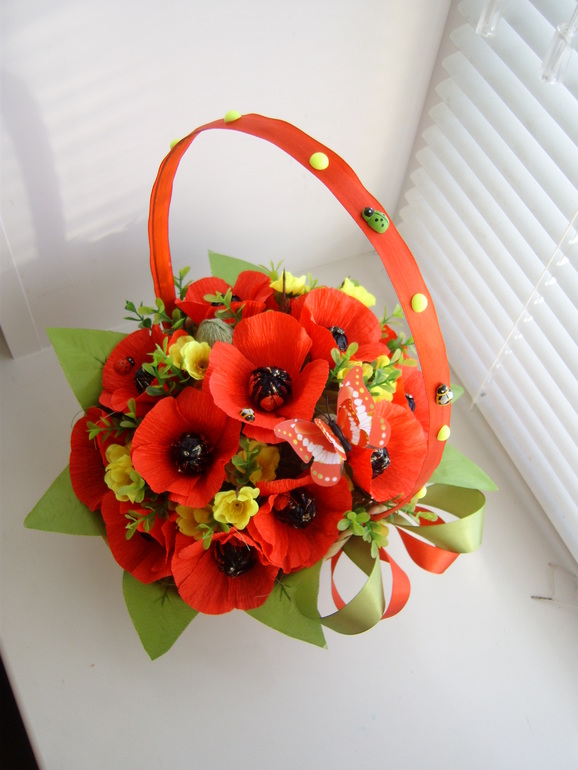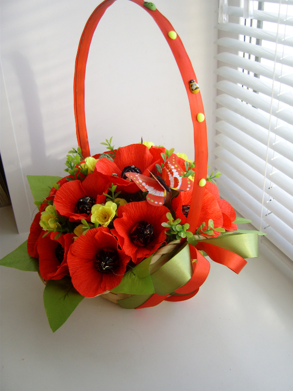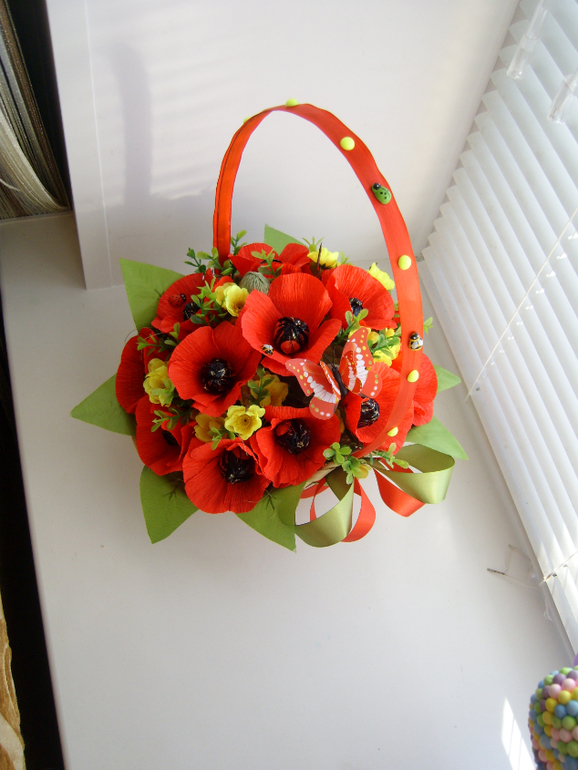Очень красивая, яркая и гармоничная корзинка. Я помню такие маки у тебя на топиарии. Красота!