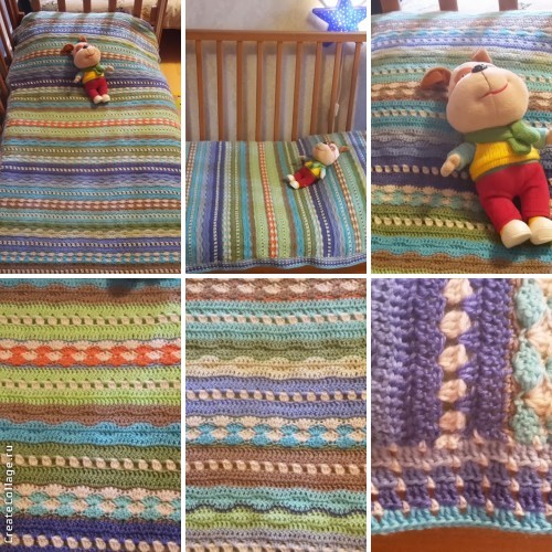 Простите меня - я так и не сделала ВТО - сын не отдает плед, прям бдит - трогать нельзя, обвязку уже делала на коленках. а сын по нему машины катал)))