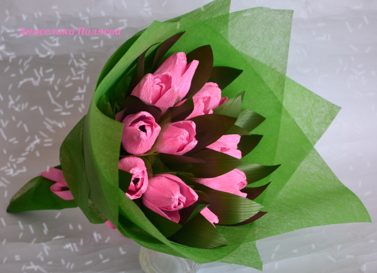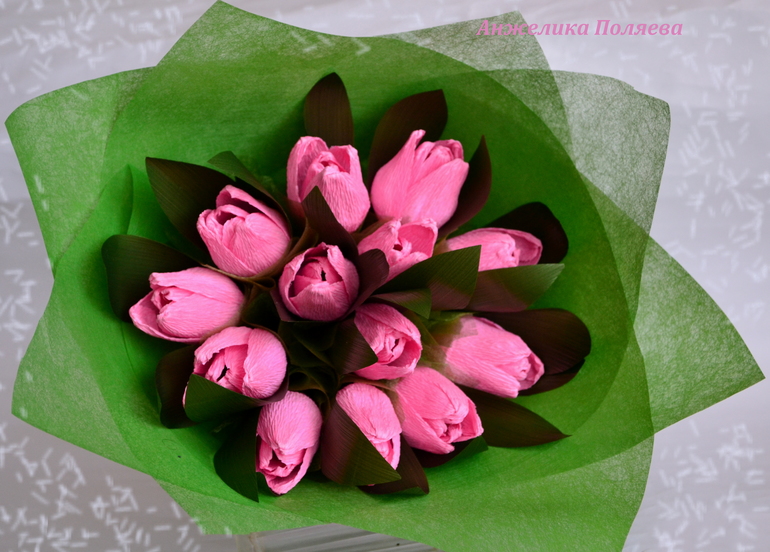 Я бы тоже фетр подрезала и мелкоцвет добавила, а так сами тюльпаны хороши.