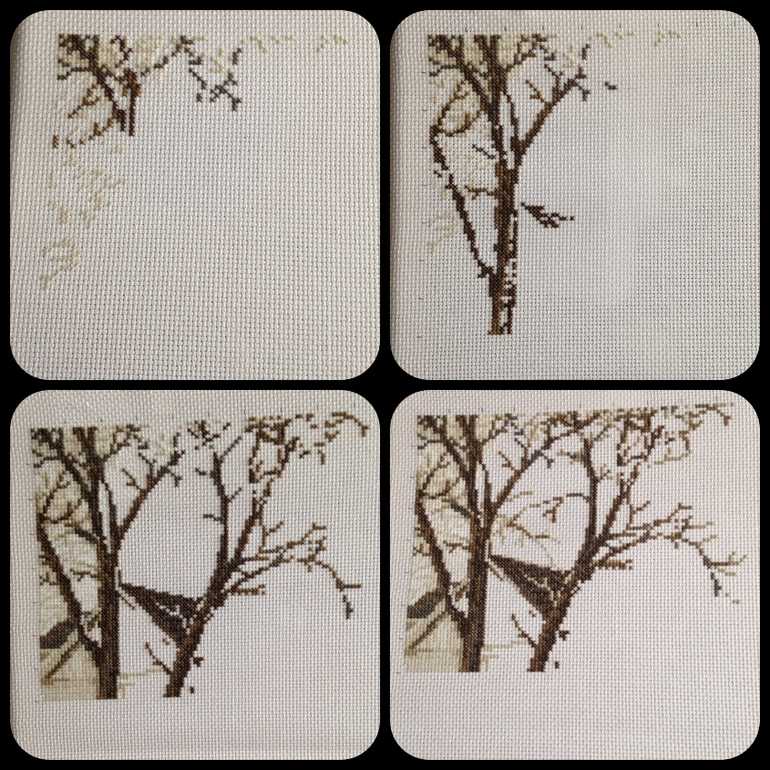 Вышивала долго, с конца мая.Все были препятствия: ветрянка дочки, лето в принципе с желанием гулять и загорать, отпуск, выход на работу...Но упорно, крестик за крестиком, ниточку за ниточкой, по вечерам... К слову: с шерстью не очень понравилось работать...
