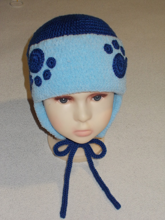 Шапка ушанка очень тёплая, двойная, связана без швов, по спирали.