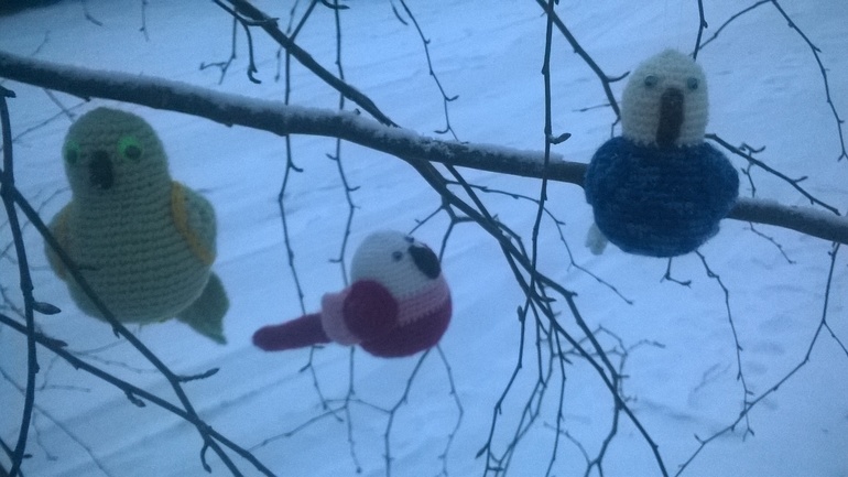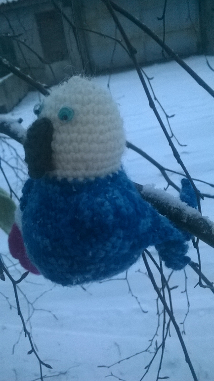 В саду попросили связать птичек-попугаев, к ним ЭКО комиссия из Турции приезжает, нужен типо "живой" уголок. Вязала без энтузиазма, т.к. дитё болеет, да и мы не совсем здоровы. Мучала я их мучала и вот что намучала.