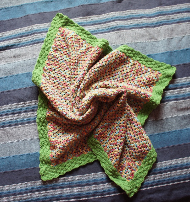 Плед весьма пестренький из-за коротких секций, но обвязка его немного "успокоила". Жаль, что фото не передает этот зеленый - он такой...травяной что ли, летний, сочный.