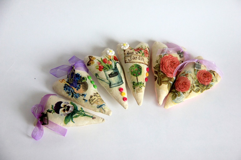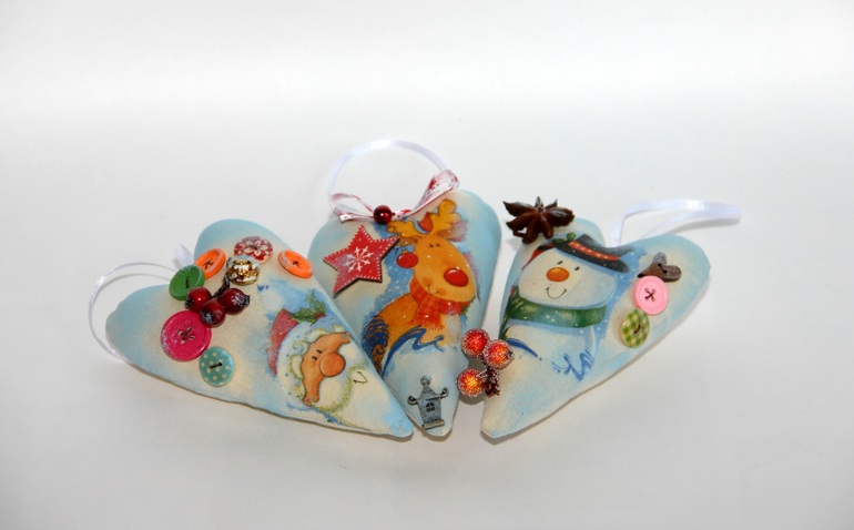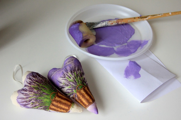 Хочу показать, как я декорирую Тильда-сердца при помощи салфеток для декупажа и клея ПВА.