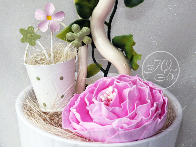 Ага, а вот и розочки, над которыми наша Юляша мучилась. Очень красиво! Не зря ты столько материала извела! Шикарные топиарии!