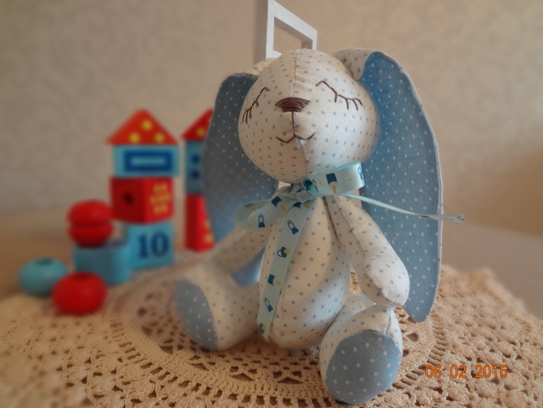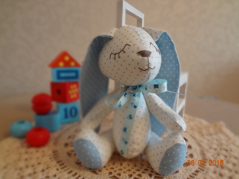 Игрушечный мир - животныеСшила еще одного зайку сплюшку . Зайка сшит из хлопка,ручки и ножки на пуговичном креплении,двигаются.Ростик 18см.