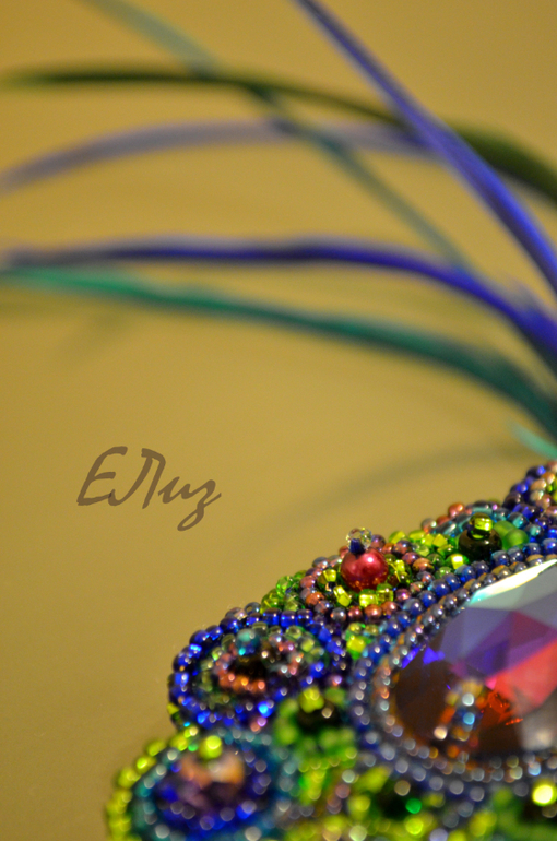 Основа композиции - крупный кристалл-хамелеон из коллекции Swarovsky Elements. Как же он играет под разными углами зрения и переливается от попадания даже неяркого пучка света!!!