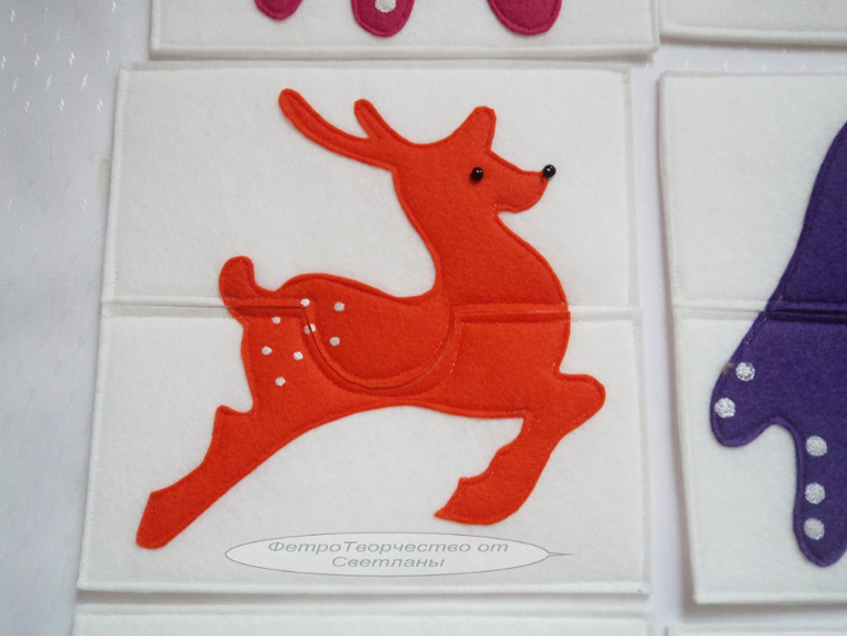 Шила я пазлы и применила в них оленя( косулю) и так она мне понравилось, что решила сделать ее в виде елочной игрушки.