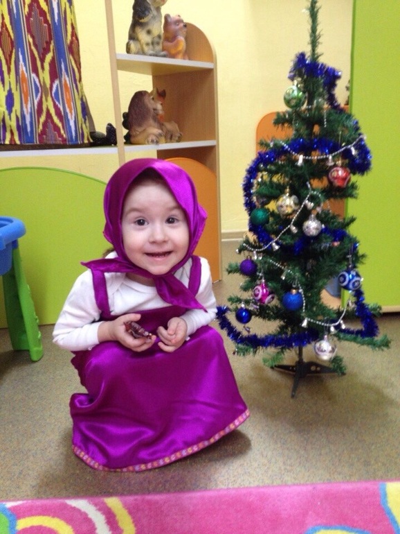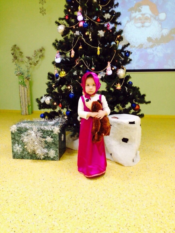 Срочно нужен был костюм для доченьки на Новогодний утренник, который должен был состояться на следующий день. Покупать готовый мне не хотелось. Самое простое, что мне пришло в голову, так это костюм Маши, так что зашла в ближайший магазин, закупила материал и вперед кромсать и ваять! Машинки швейной я не имею, так что пришлось ночку попотеть, тем не менее костюм к утру был готов: