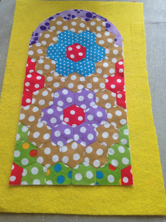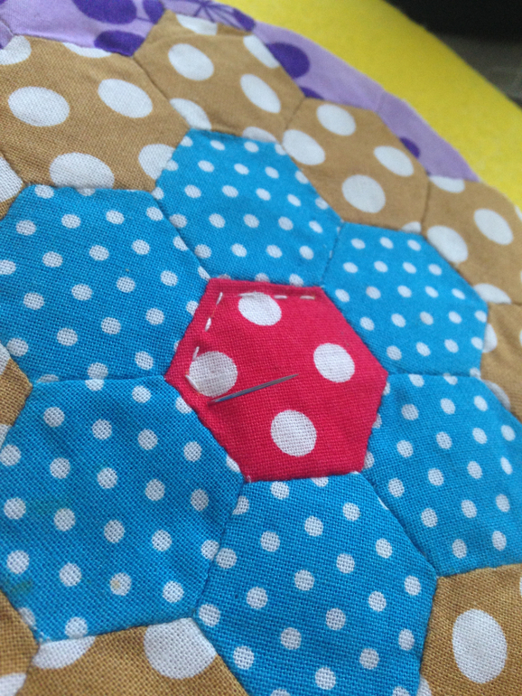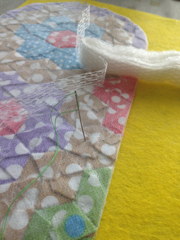 Делаем стежку вот так, по периметру каждого гексагончика. Обычным швом вперед иголкой.