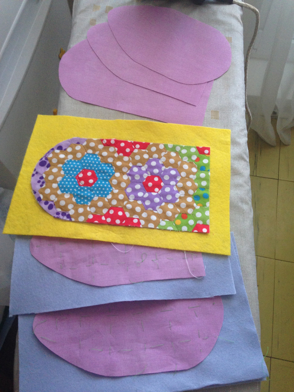 Далее пока не могу двигаться, потому что нет таких тряпочек-уплотнителя. Фетр есть, но его жааалко, он такой дорогой. Вечерком пойду куплю, выкрою, приметаю и сделаю ручную стежку. Кстати, а полосочки как простегать? Параллельно швам, каждую полоску в двух местах, да?
