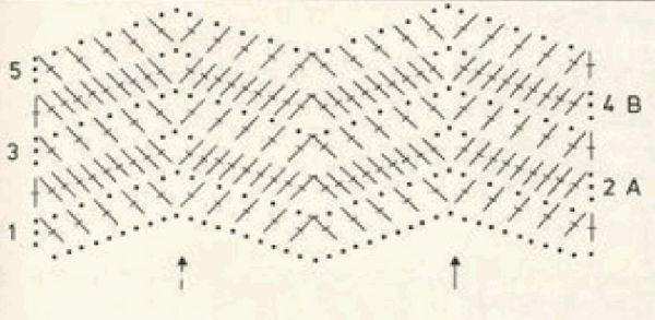 Как смогла, так и нарисовала... Столбик без накида, полустолбик, столбик с накидом, если необходимо, то и столбик с двумя накидами (надо смотреть по месту), а потом в обратном порядке.