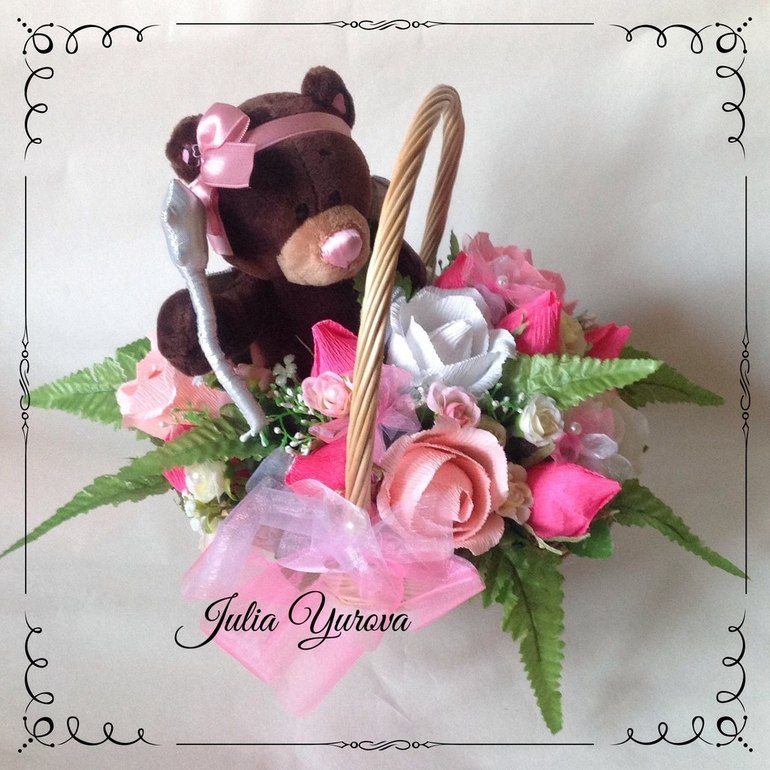 Корзинка с рафаэлами и игрушкой для девочки
