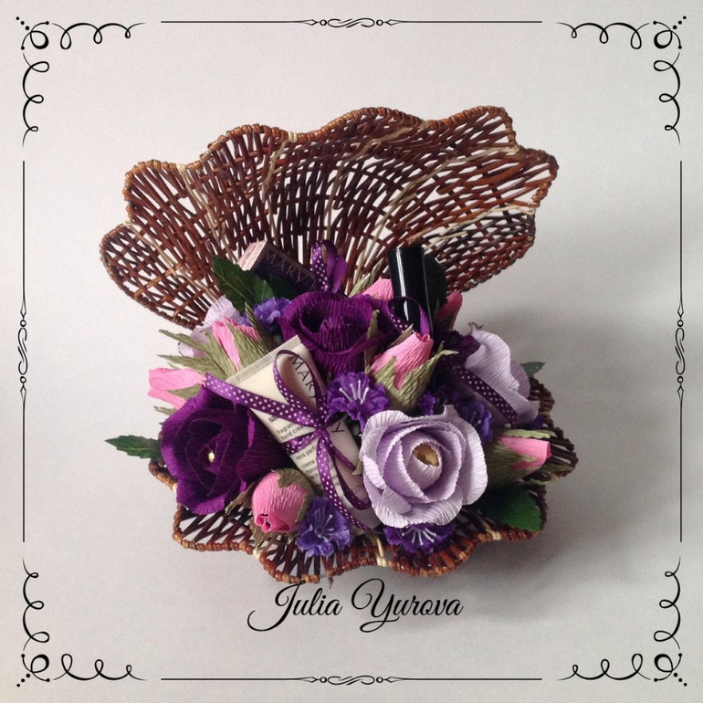 Работы супер ) розово- зеленая корзина, ракушки с косметикой вау!