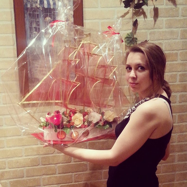 Это корабельный хит - Алые паруса. В этом году сделала их уже четыре штуки и, наконец-то, догадалась сфотографировать с собой. Для масштабу так сказать...