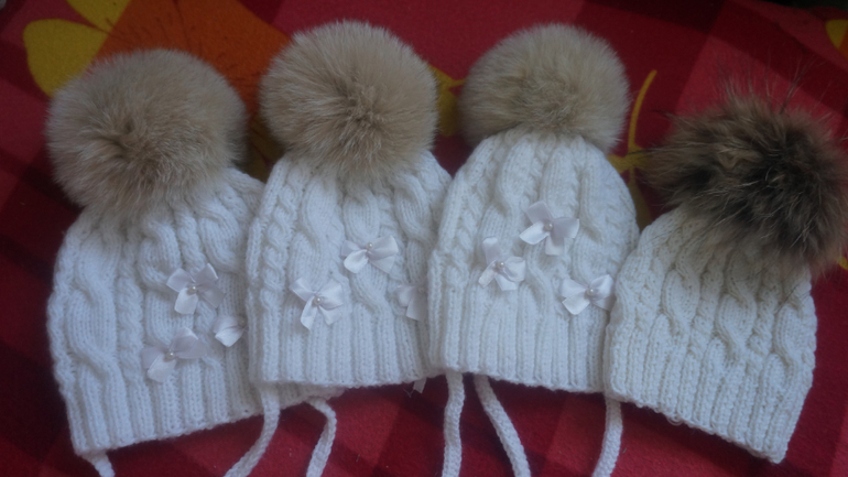 Очередные повторы....наконец то заказ выполнен) Два комплекта для сестренок и шапочки поштучно))) если честно,устала уже от белого цвета.... связала их около десятка наверное. Пряжа полушерсть в две нити,подклад флисовый. За помпошки спасибки Наташе!!!